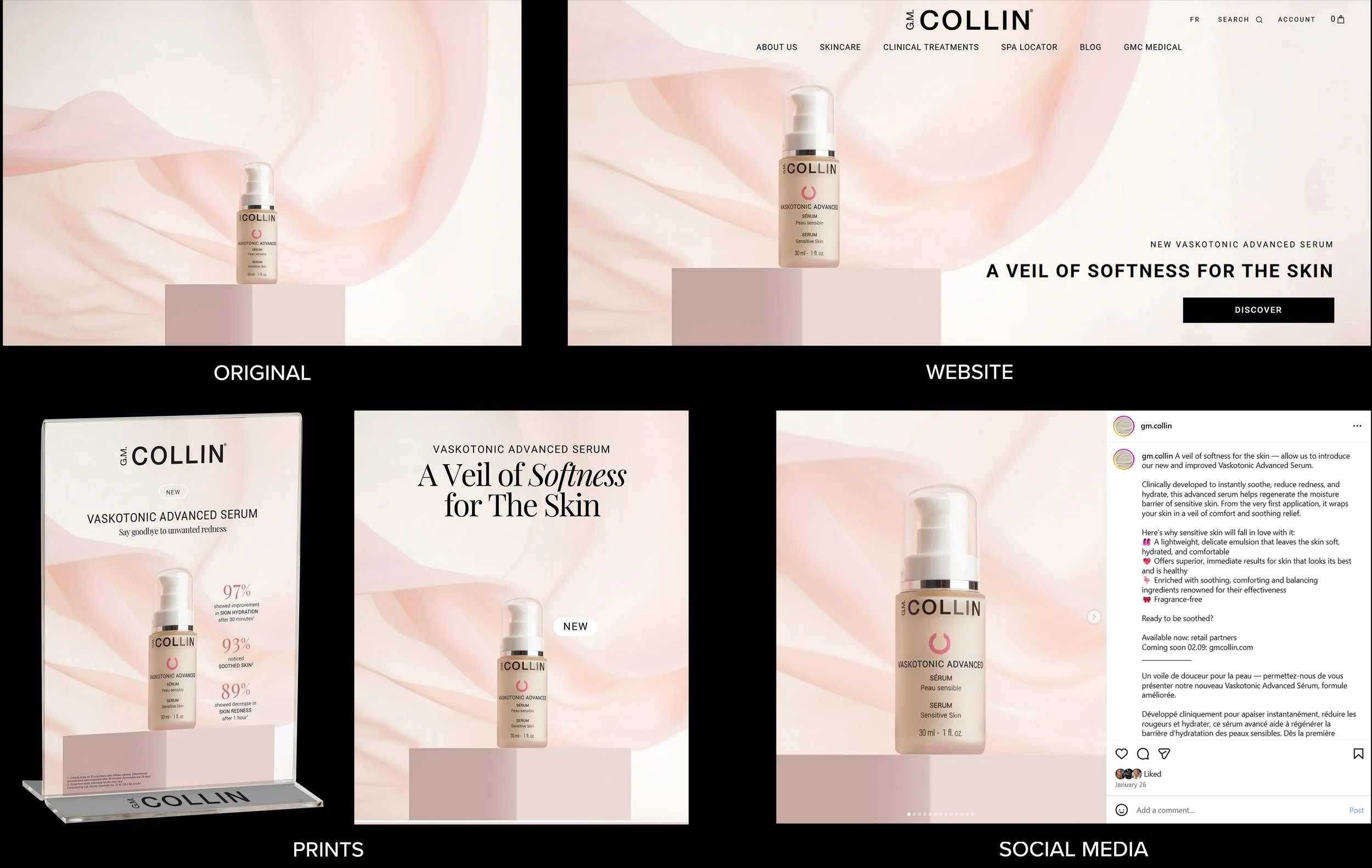 G.M. Collin is a professional skincare brand with in-house research, manufacturing, and international distribution. Understanding the products’ technical specifications and the brand’s positioning is central to how I approach every visual decision. My role requires consistency across different environments, from laboratories to campaign imagery, while maintaining a unified brand identity.